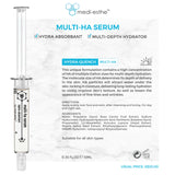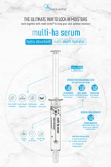 This unique formulation contains a high concentration of HA of multiple Dalton sizes for multi-depth hydration. The molecular size of HA determines its depth of delivery in the skin. HA particles will attract water under the skin, locking in moisture, delivering long-lasting hydration to visibly improve skin’s texture. As well as lessen the appearance of fine lines and wrinkles.