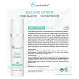This peeling solution combines AHAs and BHA to cleanse, exfoliate skin and combat the visible signs of premature aging. Glycolic Acid and Lactic Acid slough away the outermost layer of dead skin while Salicylic Acid works effectively to clear the congested pores. Blend of Aloe Barbadensis Leaf Juice, Calendula, and Licorice extract helps to rejuvenate, soothe skin, reduce the appearance of fine lines and wrinkles and improve skin radiance and tone. Revealing smoother, brighter, and fresher skin.